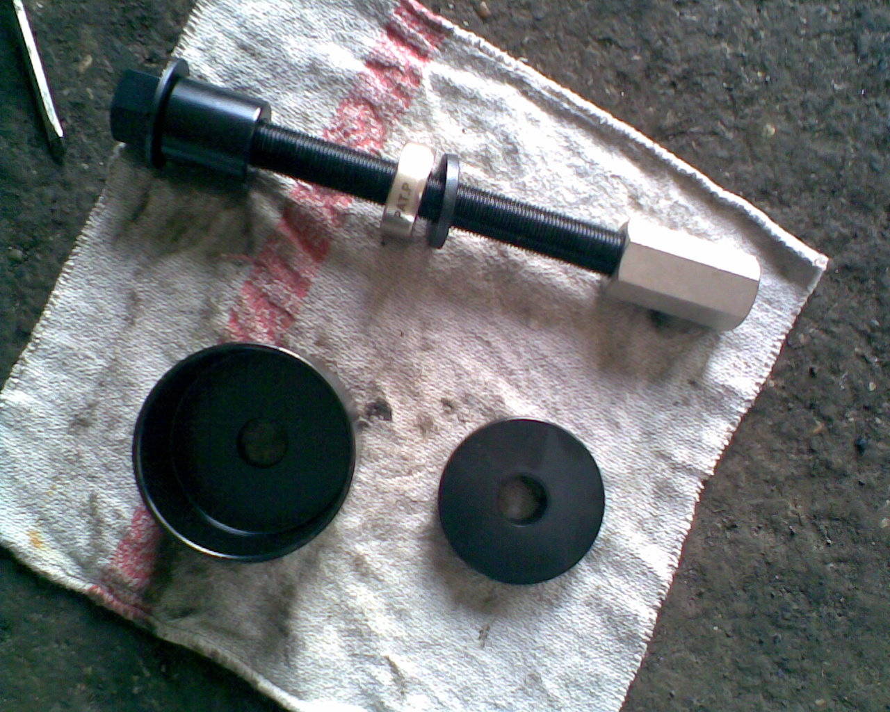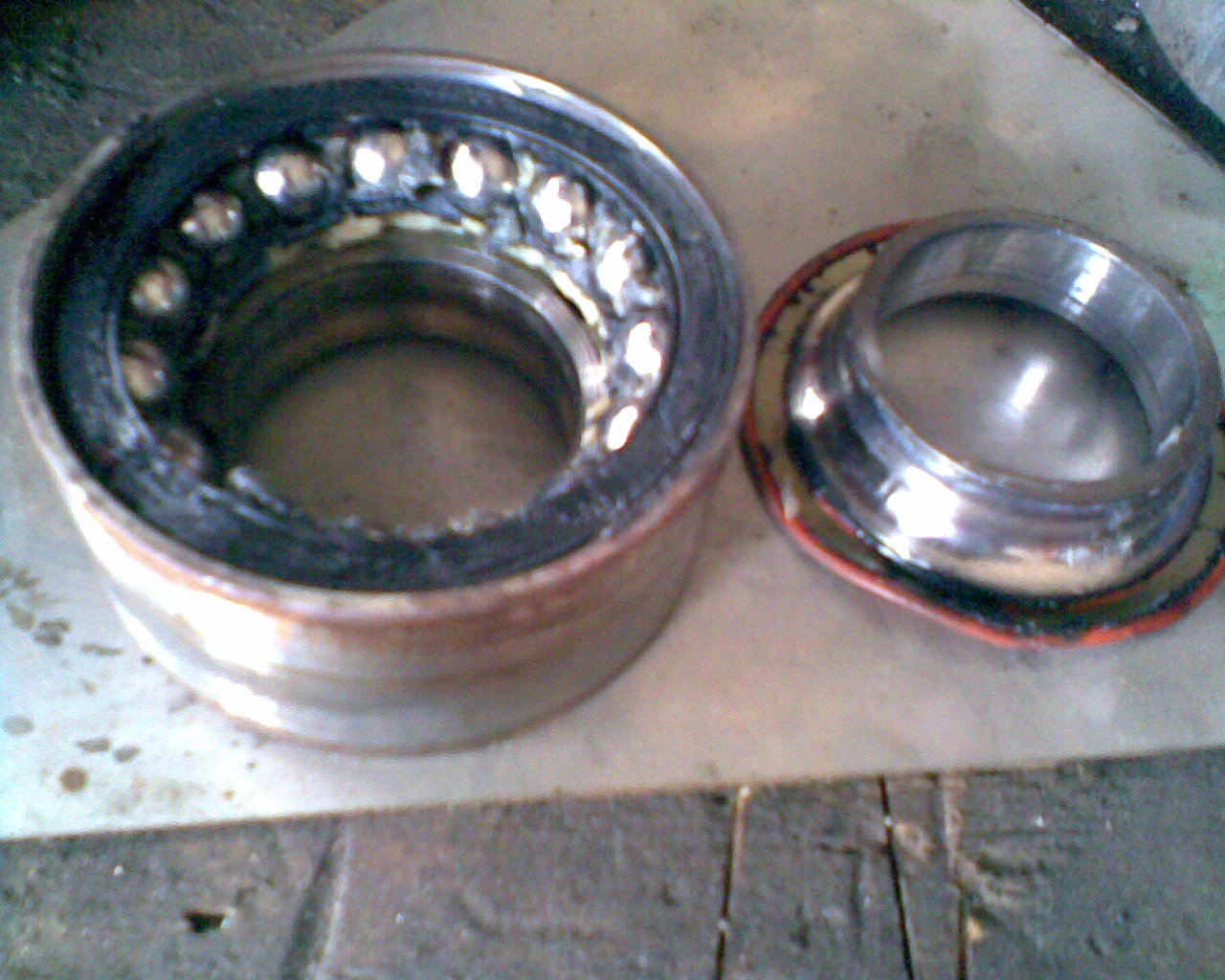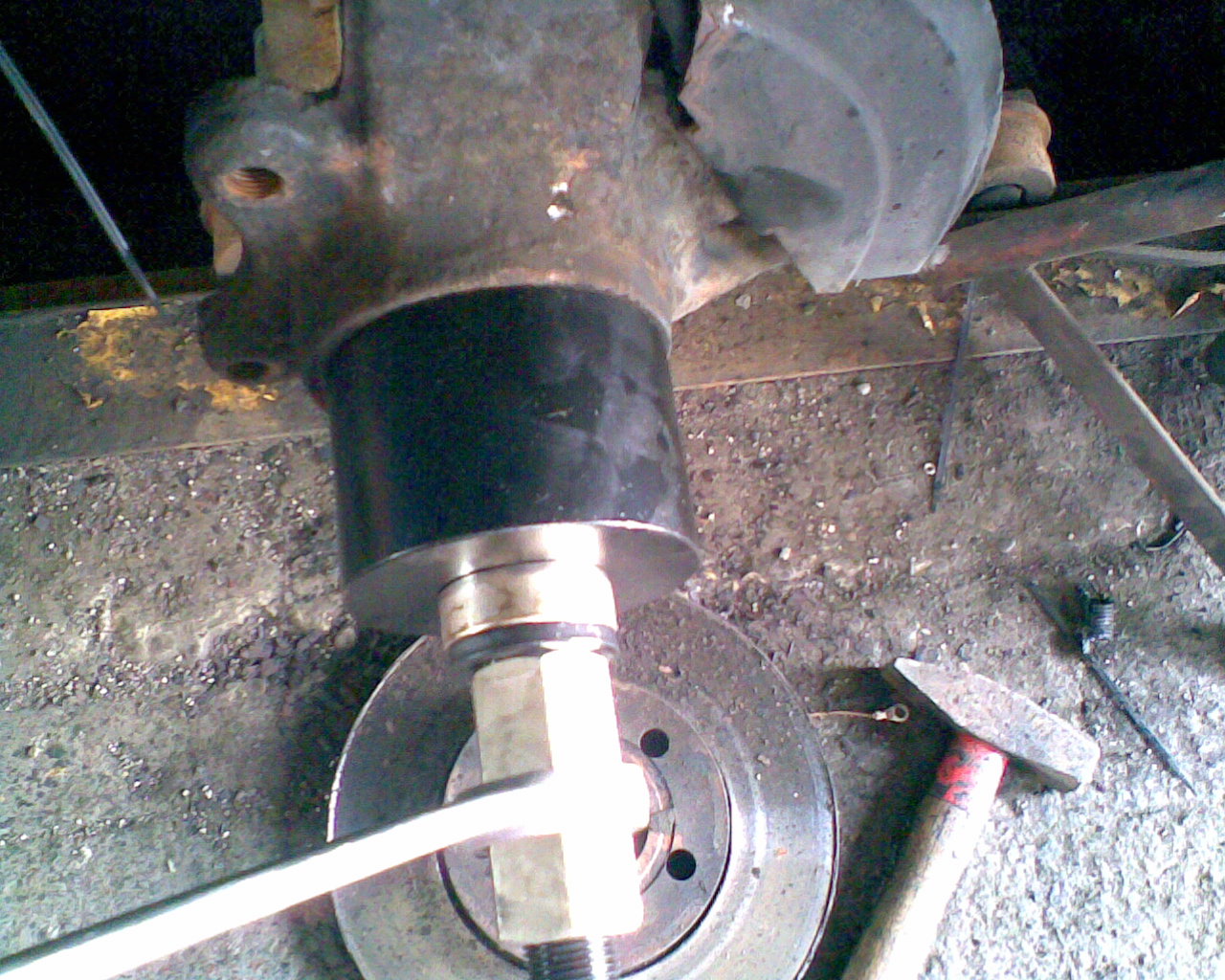 12.) Neues Radlager mit dem Radlagerabziehwerkzeug einpressen. Dabei etwas Fett (Molik???) verwenden, damits besser flutscht.