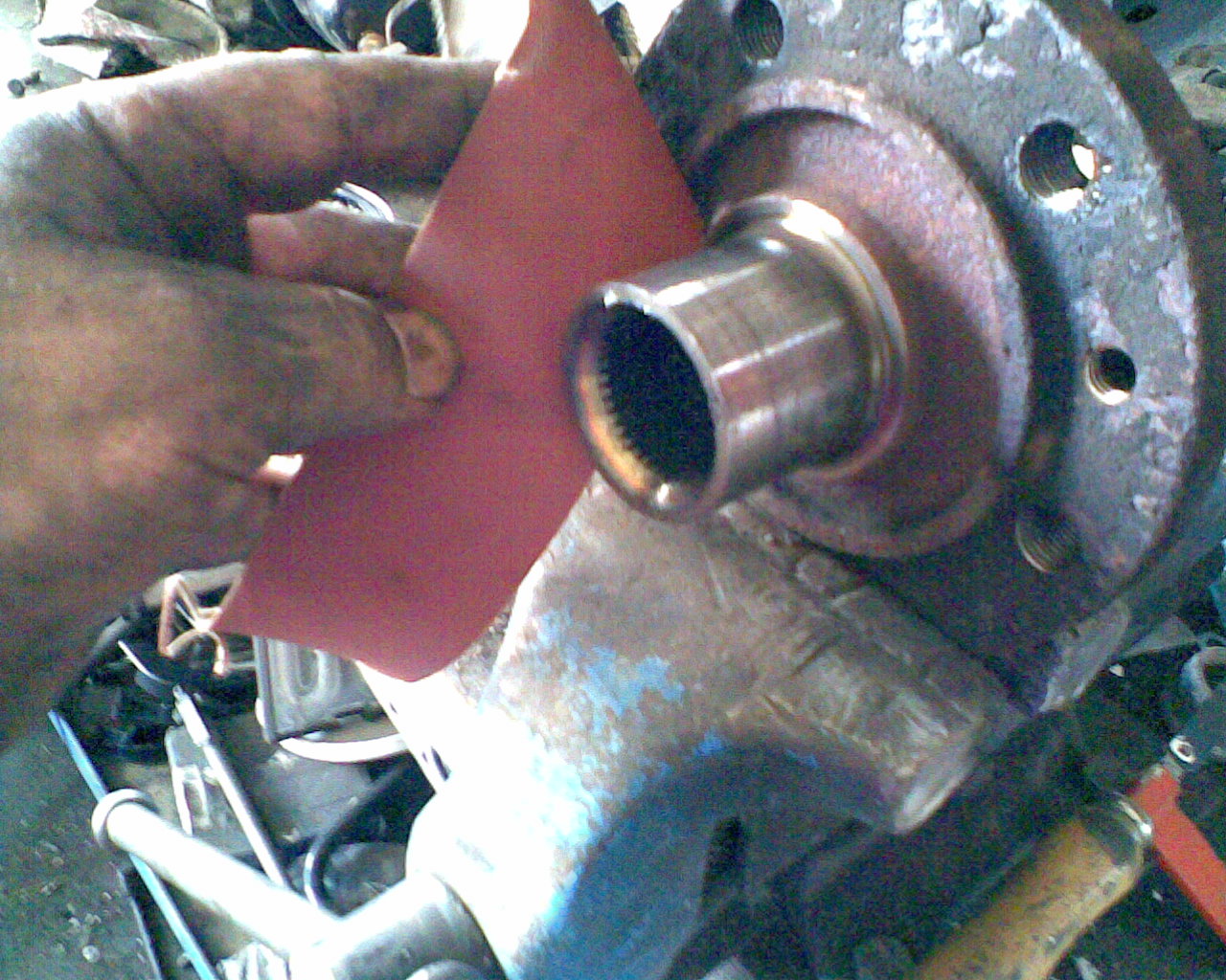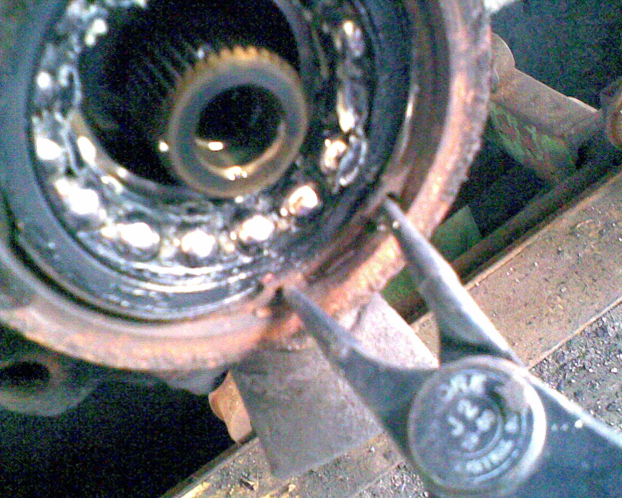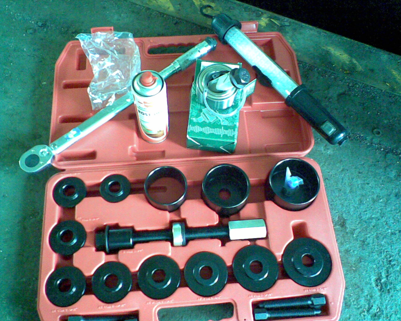 12.) Neues Radlager mit dem Radlagerabziehwerkzeug einpressen. Dabei etwas Fett (Molik???) verwenden, damits besser flutscht.