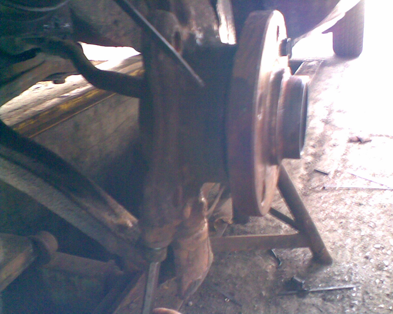 Anschliessend geht es mit richtigem Werkzeug weiter und mit einen Zweiarmabzieher abziehen. Dazu muss das Loch in der Radnarbe mit einem geeigneten Metallstückchen abgedeckt werden.